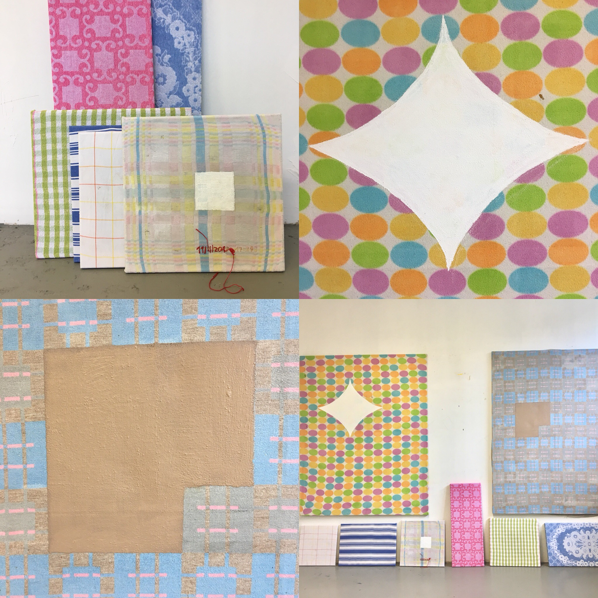 dzt. achtteilige Serie (in Arbeit), div. Größen, Acryl auf verschiedenen Textilien